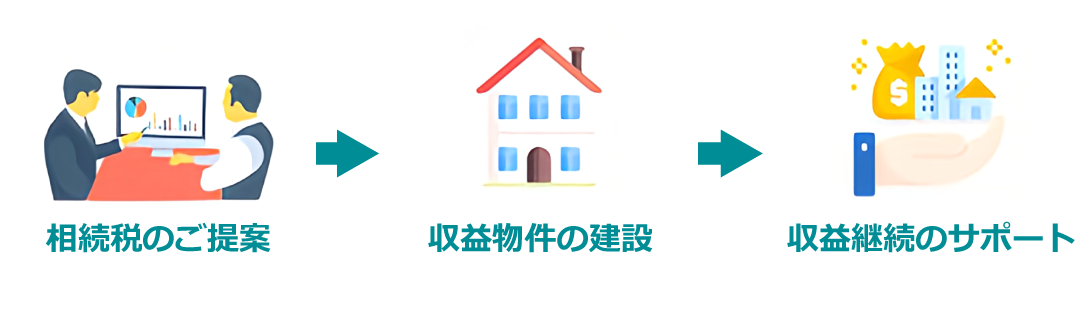 相続税軽減のご提案から、土地活用・収益物件の提案、設計・建設、建設後の運営管理まで。